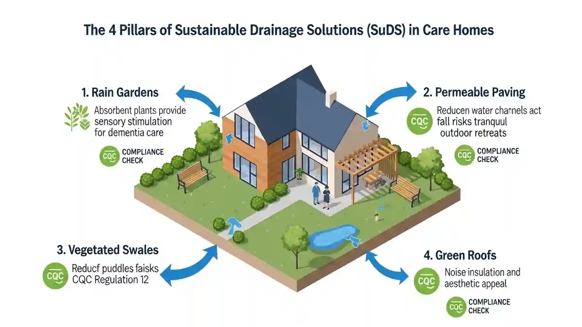 The future of sustainable drainage solutions CQC care home design is the integration of SuDS (Sustainable Drainage Systems). In Radlett, Policy EN18 of the Local Plan encourages SuDS to manage surface water runoff, which often plagues the surrounding area.